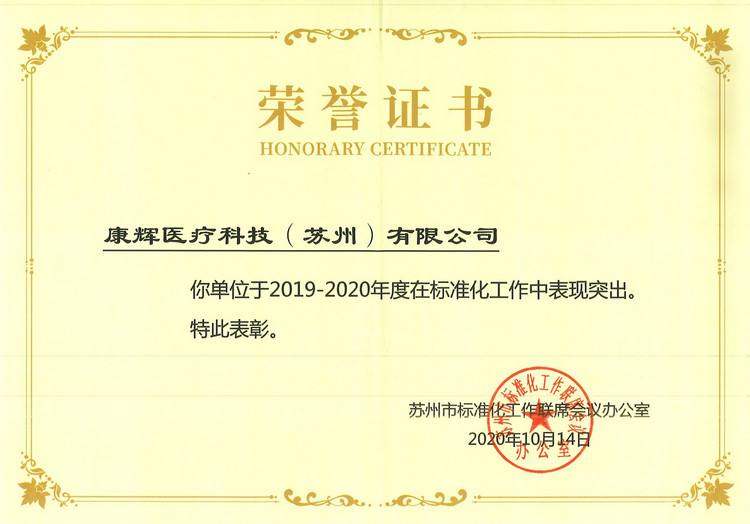 蘇州市標準化頒發“榮譽證書”
