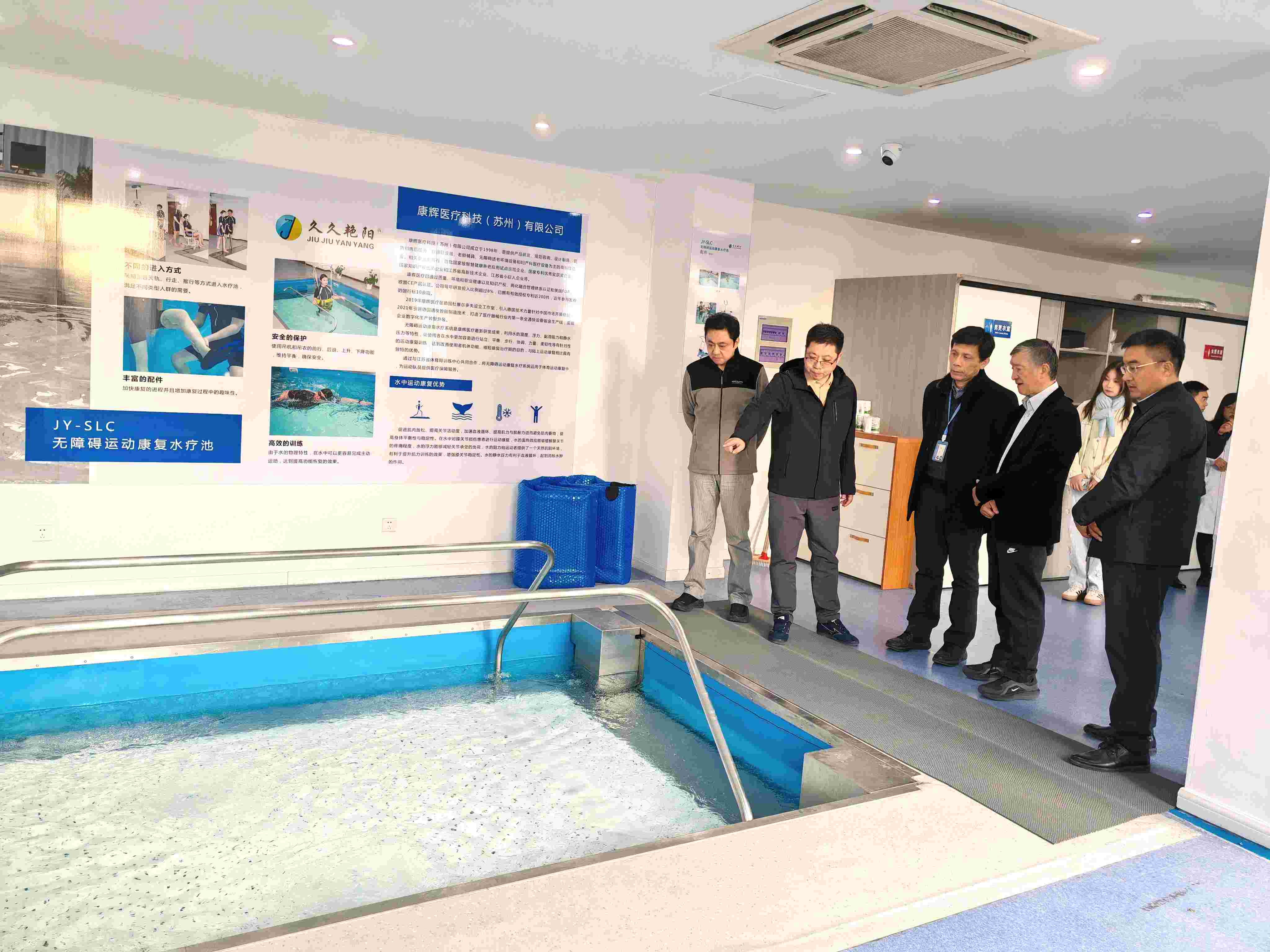 揭牌儀式后,在訓(xùn)練中心馬主任、劉主任等的陪同下,陳利忠董事長(zhǎng)向勵(lì)建安院士詳細(xì)介紹了無(wú)障礙水療中心在運(yùn)動(dòng)損傷康復(fù)治療過(guò)程的具體作用,期望水療設(shè)備能為江蘇體育健兒賽場(chǎng)拼搏保駕護(hù)航。