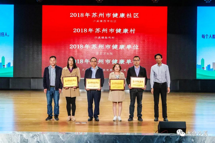 4月26日,沙溪鎮舉辦了以“古韻今風千年名鎮,健康長壽魅力沙溪”為主題的江蘇省健康鎮建設啟動儀式暨健康生活方式展演活動。我公司經前期資料遞交、專家評審等環節,最終獲評江蘇省、蘇州市兩級健康單位榮譽,在活動上由沙溪鎮領導頒發獎牌。